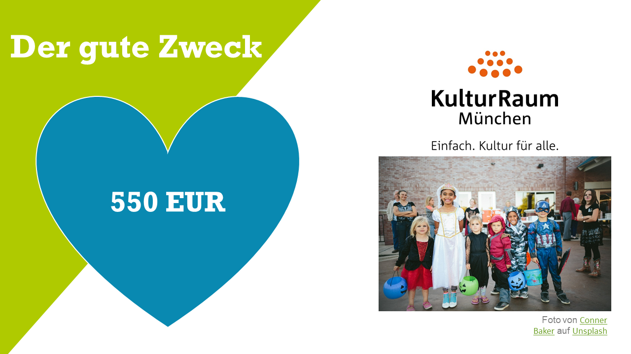 Sieger-Team: Don’t quiz me now Preis: Gutschein Brauereiführung im Werk 2 Spendenzweck: Kulturraum München Spende: 550 €