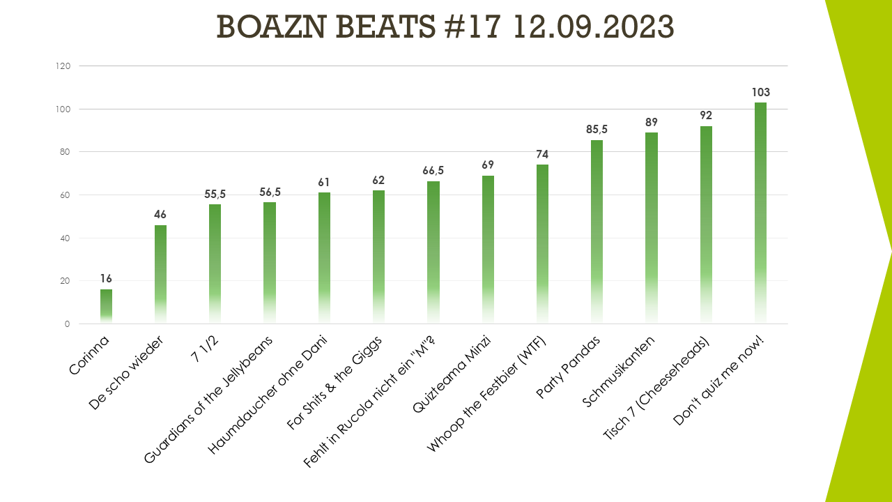 13 Teams sind zum BOAZN BEATS #17 angetreten – a fetzen Gaudi! Gefragt war wie immer Musikwissen in der Warm-up Runde und in der Bilderrunde, in der Künstler:innen als Funko-Pop-Figuren zu erraten waren.