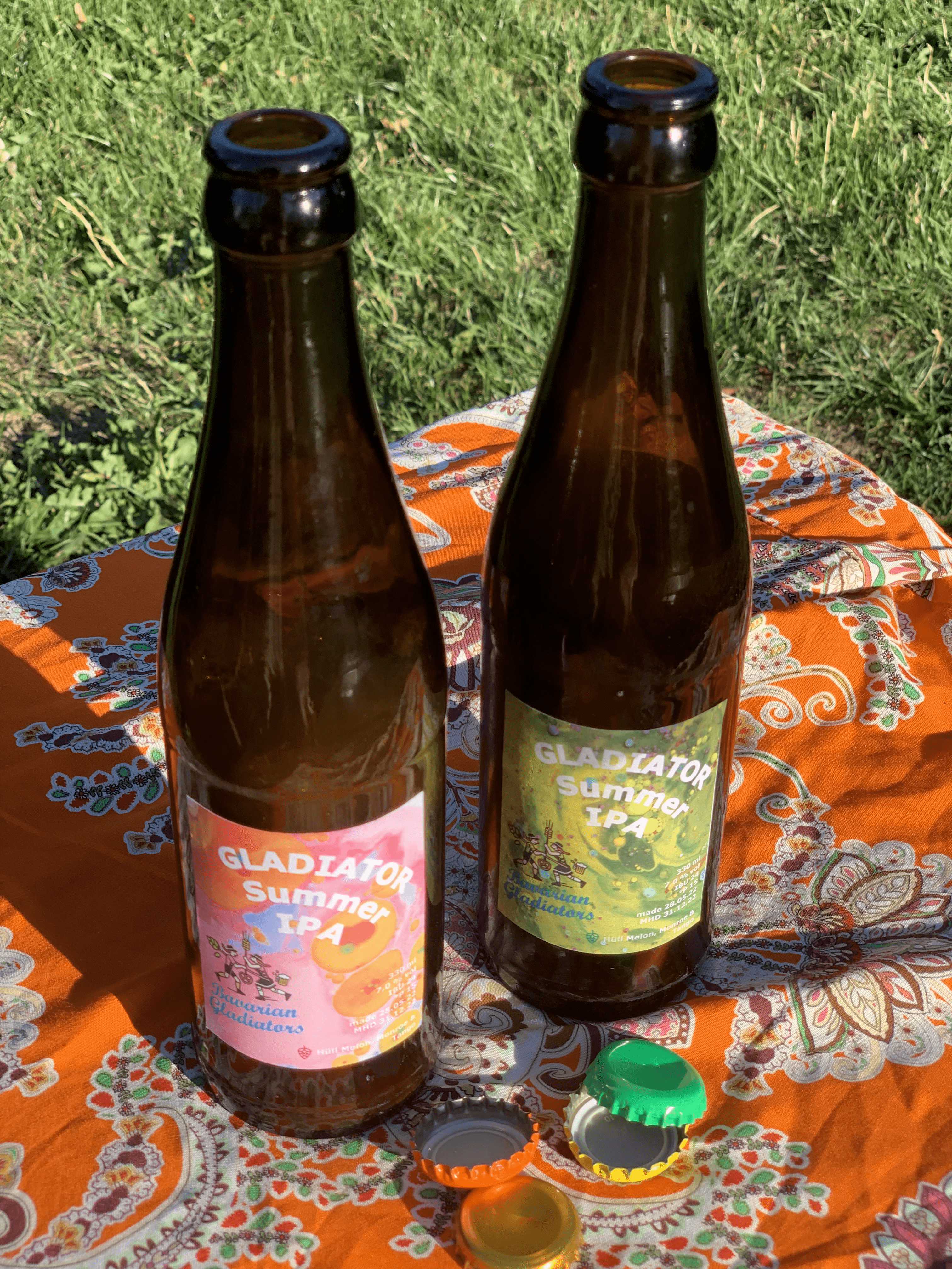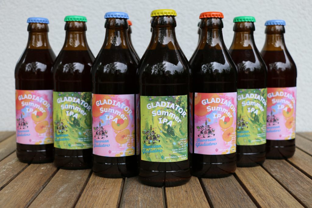 Bernsteinfarben, frisch und äußerst süffig! Unser erstes selbst gebrautes Bier kann sich sehen lassen: Das „Gladiators Summer IPA“ war eine limited Edition von rund 70 Flascherln Craftbier, gebraut am 28. Mai 2022. Um genügend Flaschen für die Abfüllung zu haben, mussten im Vorfeld einige Kästen Giesinger 0,33l Erhellung getrunken und sofort danach ausgespült werden. Und zwar ordentlich heiß! Wohnzimmer, Küchen und Keller wurden kurzzeitig zu Leergutlagern. Aber der Aufwand hat sich gelohnt. Alle Flaschen haben die Neu-Abfüllung überlebt und sind gut gereift. Nach etwa zwei Wochen im Kühlschrank und nochmal 2 Wochen im Keller konnten wir den ganzen Sommer unser eigenes IPA genießen.