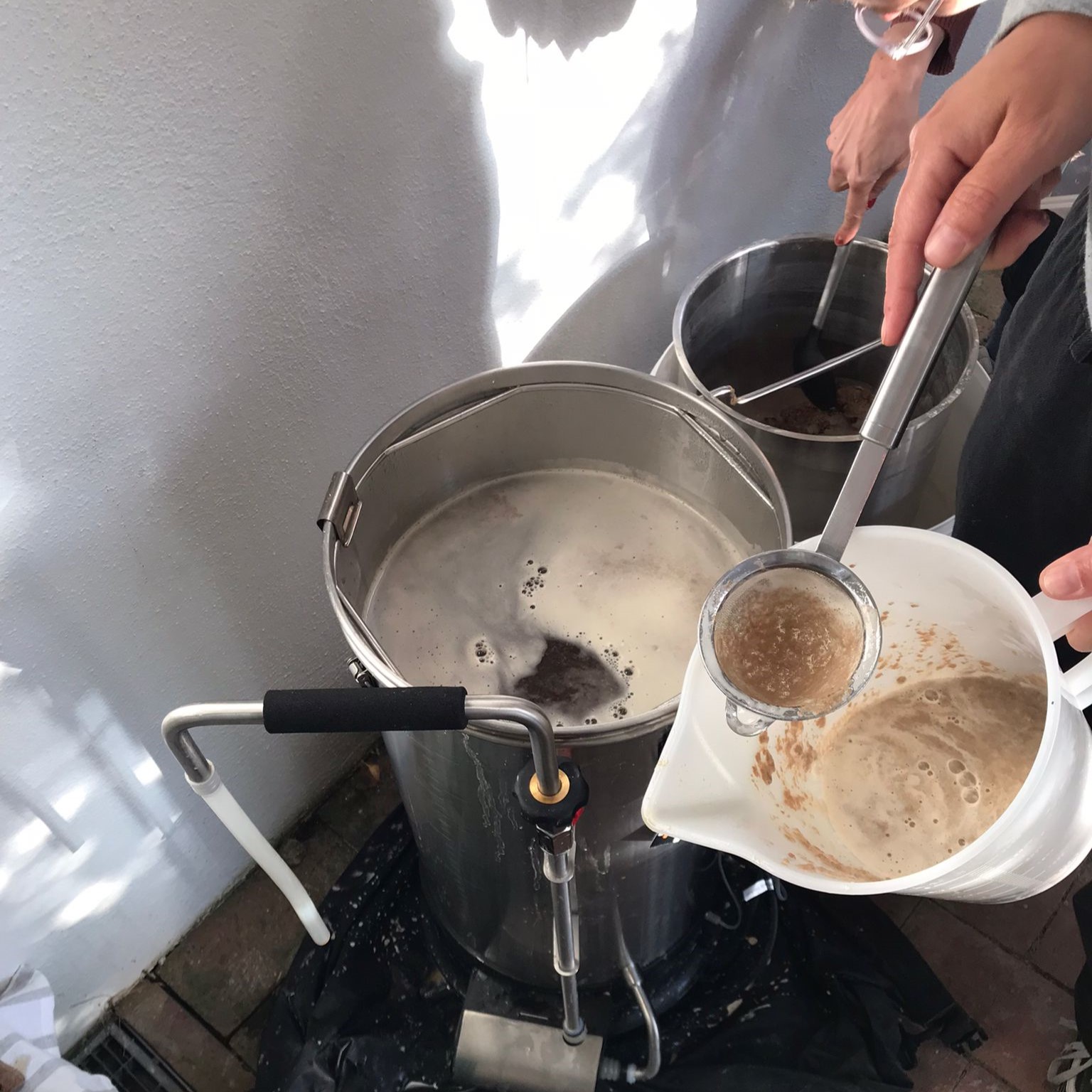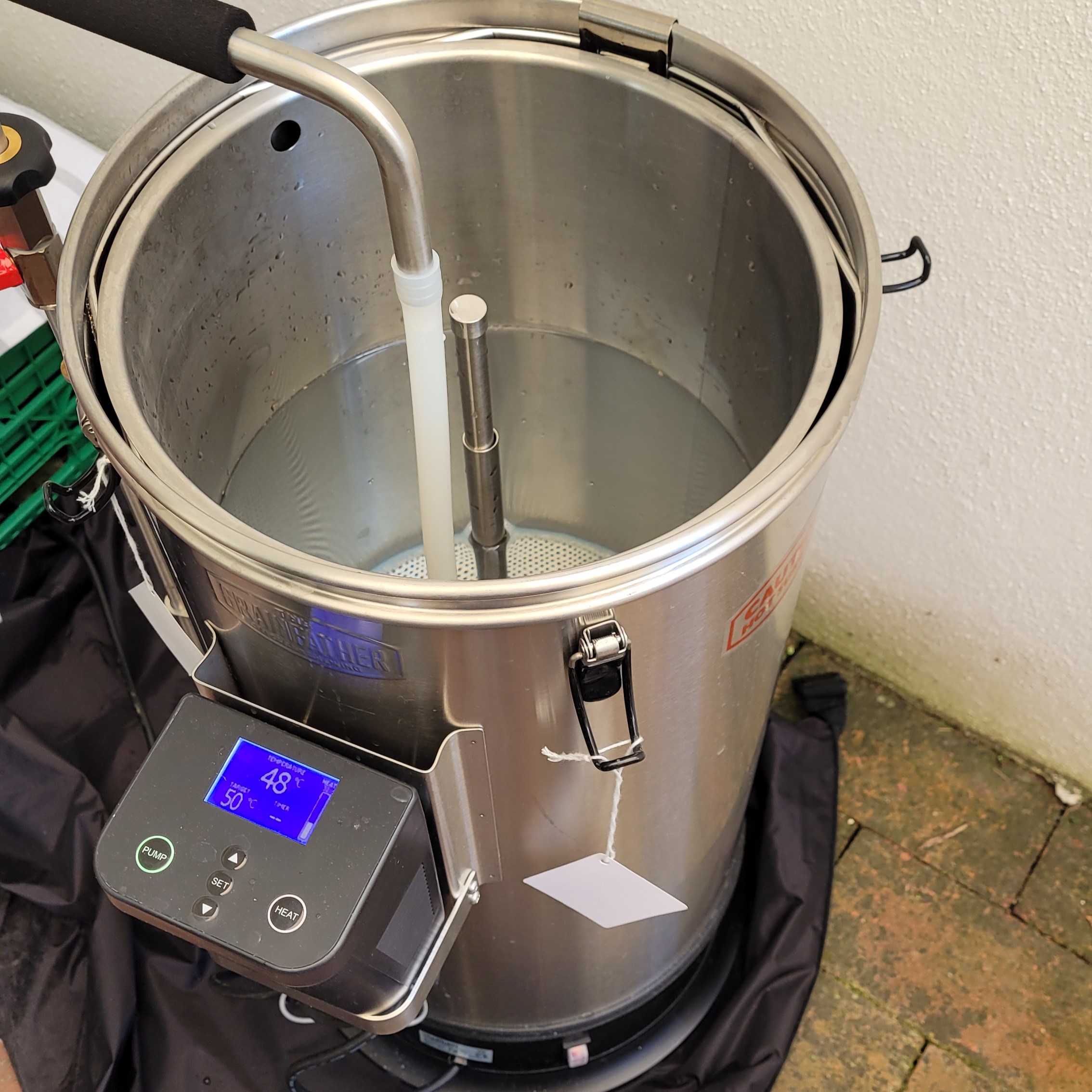 Für unser erstes Bavarian Gladiators Summer IPA haben wir uns für ein obergäriges, bernsteinfarbenes IPA entschieden mit feinen Bitternoten und ordentlich bums. Dank der tollen Vorbereitung von Biersommelière Clarissa, standen alle Zutaten am Brautag parat und wir konnten direkt loslegen. Herzstück des Brautag war der „Grainfather“, ein „All in one“ Brausystem, dass den Brauvorgang vom Einmaischen bis zum Hefe anstellen und Hopfen sehr easy macht. Also ja, der Grainfather war unser Godfather beim Brauen und wir haben damit ein süffiges schönes Sommer-Bier gezaubert.